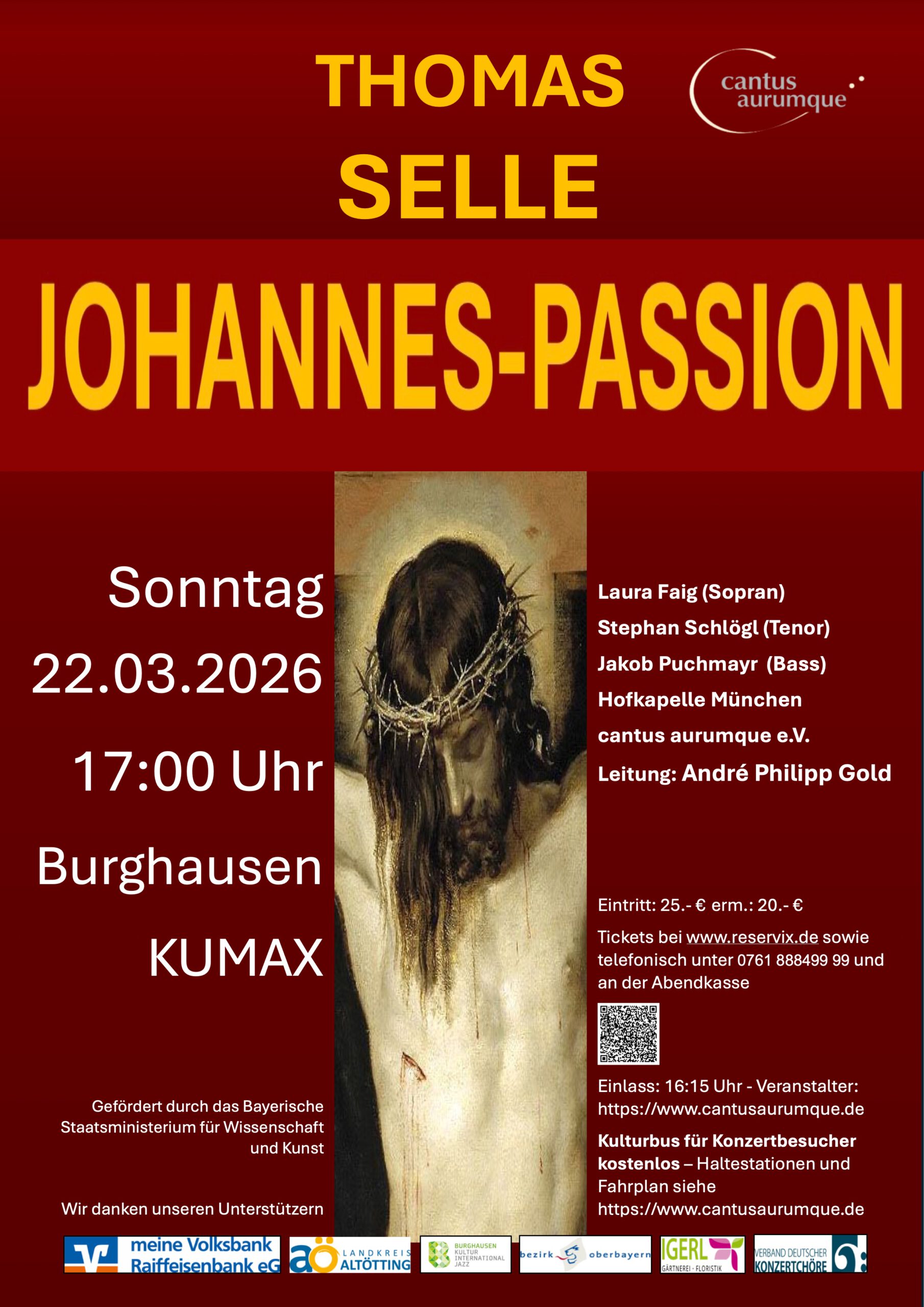 Am Sonntag, den 22. März um 17:00 in Burghausen im KUMAX – zusammen mit dem Kammerchor cantus aurumque und der Hofkapelle München unter der Leitung von André Philipp Gold